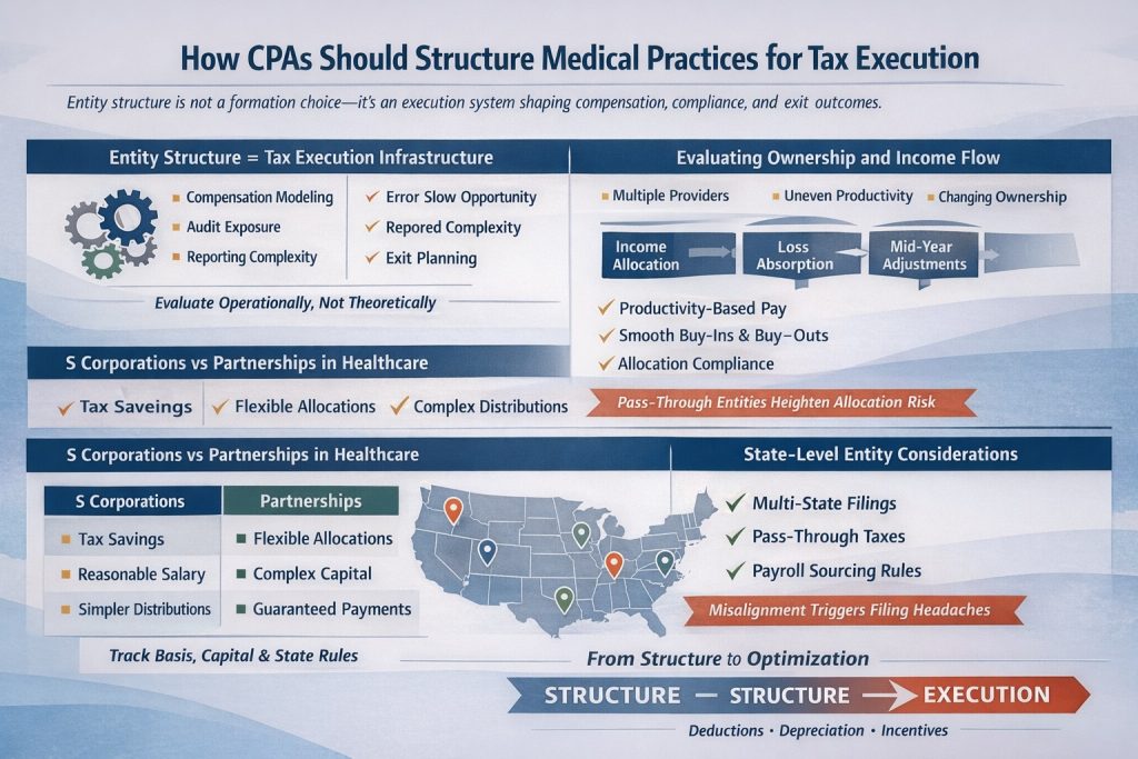 CPAs advising medical practices must evaluate entity structure through an operational lens, not a theoretical one.